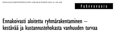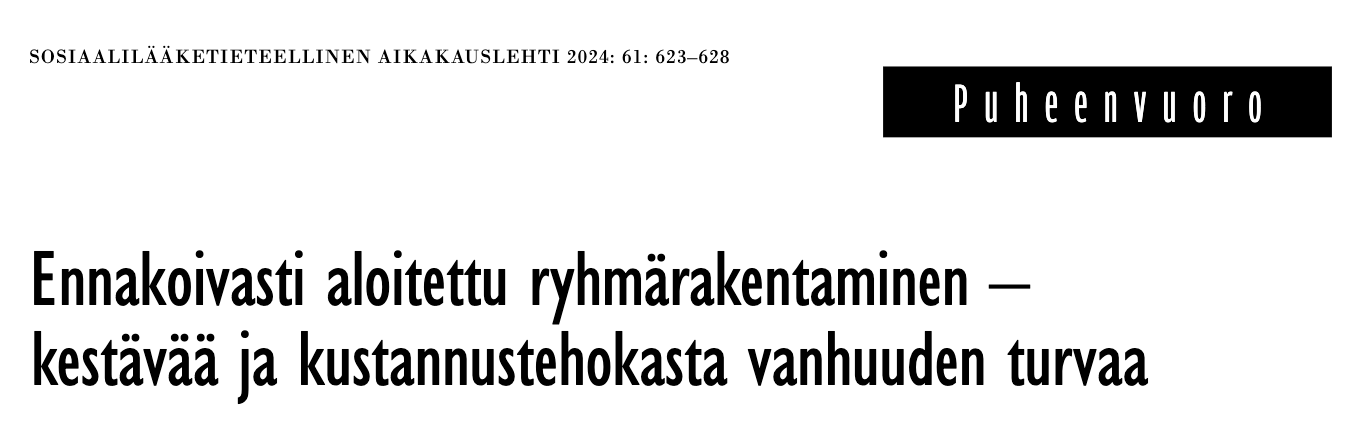 Ennakoivasti aloitettu ryhmärakentaminen – kestävää ja kustannustehokasta vanhuuden turvaa