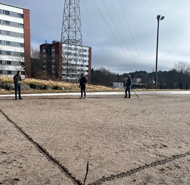 Kotileikki jalkapallokentällä - kävin testaamassa lauteiden kokoa