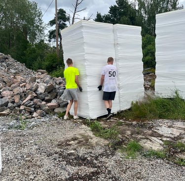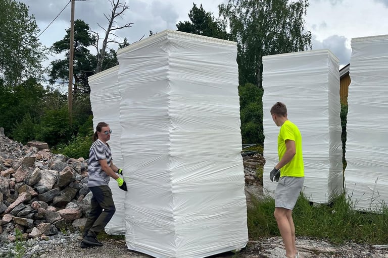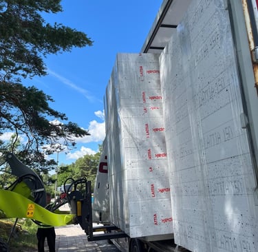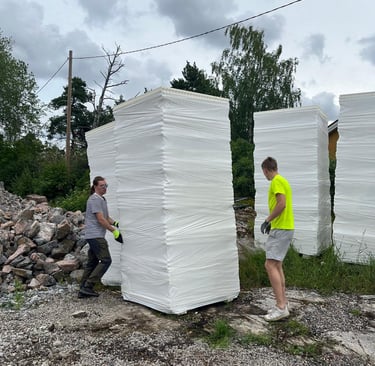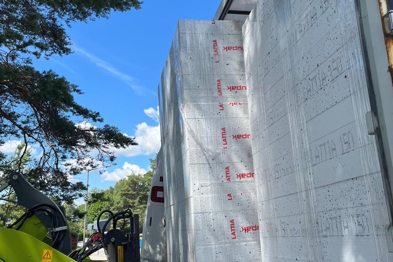 Harkkoja ja lattiastyroxeja - tarvikkeiden purkamista ja siirtoa