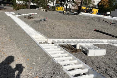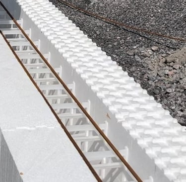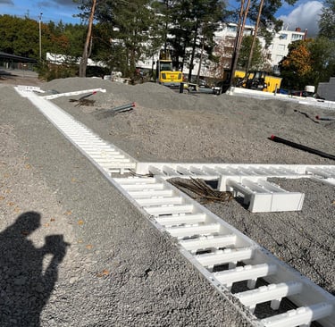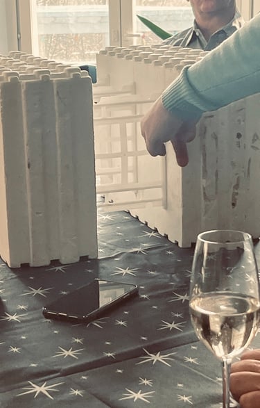 Rakennusmestarimme esitteli Kaitsun kanssa jo ensimmäisessä palaverissa maaliskuussa -24 posket hehkuen ”Lego-palikoita”, jotka toimisivat rivitalomme rakenteiden perusyksikköinä. Opin heti, että nämä EPS-harkot valittiin hyvän eristeominaisuutensa, helpon käsiteltävyytensä ja nopean rakentamisen vuoksi talomme ytimeksi. Olen aina pitänyt ZZ-Topin Concrete and Steel” -biisistä, mutta nyt se sai vielä uuden merkityksensä.