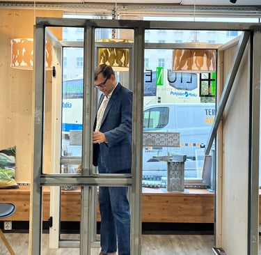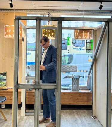 Liunella kokeilimme liukuovien mekaniikkaa ja pohdimme ovivalintoja.