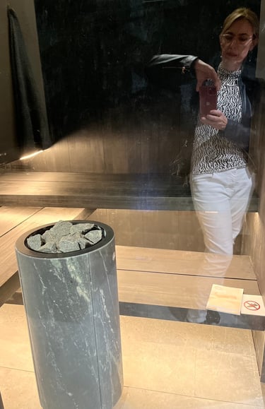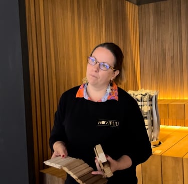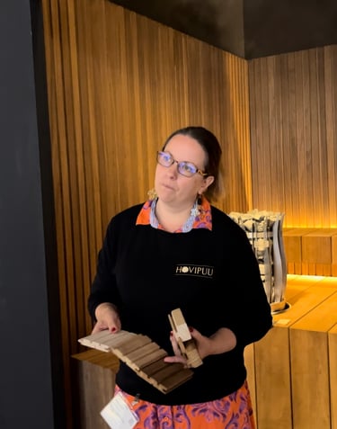 Poimintoina jäivät erityisesti mieleen Hovipuun keisaripuu laudemateriaalina, akustinen rimapaneeli seinä- tai kattovalintana sekä Tähtisaunojen kauniit kiuasmallit. Hanojen, vetimien, laattojen ja tekstiilien tulituksessa pää meni pyörälle. Kaitsu ja Laura saivat hyvän Festivon messutarjouksen jääkaappipakastimensa hankitaa varten. Keittiöitäkin taas kurkattiin.